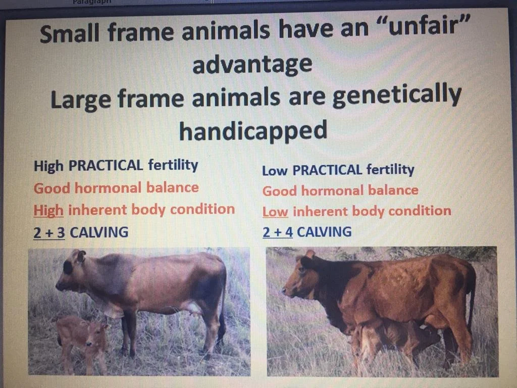 La situación anterior se manifiesta en la mayor fertilidad en los pastos (veld) de las razas "no mejoradas" en relación con las razas "mejoradas". No es así, dirán algunos. Entonces surge la pregunta: ¿Por qué el Sanga (Nguni) "no mejorado" superó al Bonsmara científicamente mejorado en sweetveld (Omatjenne, Namibia)?